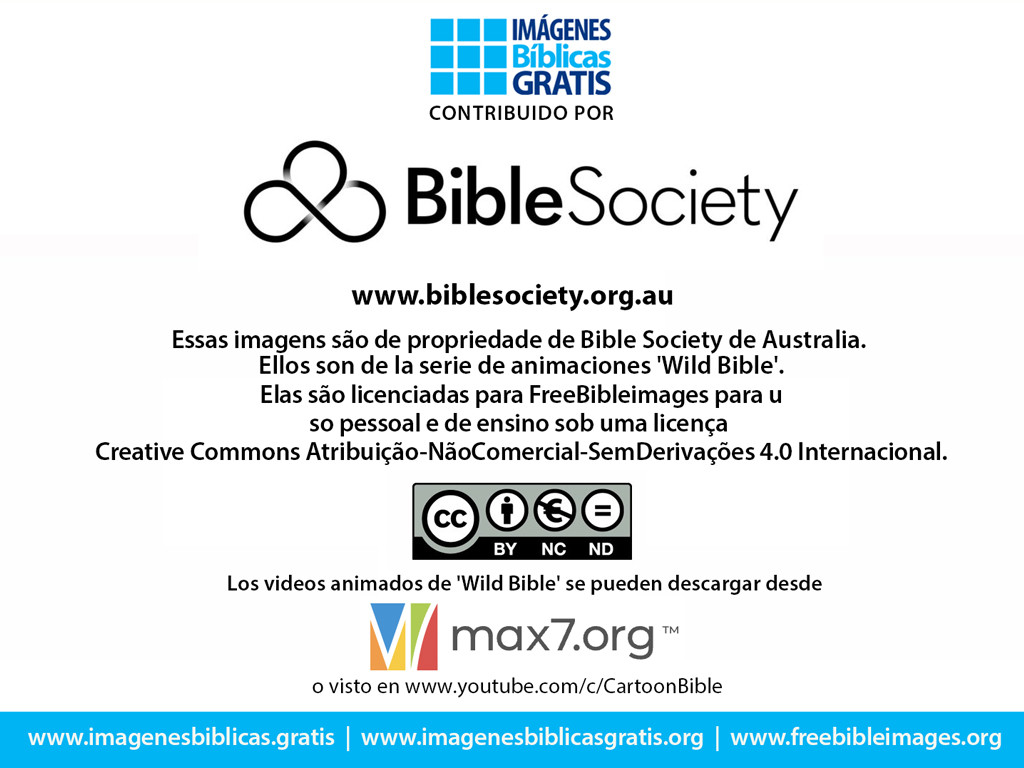 Estas imágenes tienen copyright de Bible Society de Australia. Están licenciadas a FreeBibleimages para uso personal y de enseñanza bajo una licencia de Atribución-NoComercial-SinDerivadas 4.0 Internacional de Creative Commons.